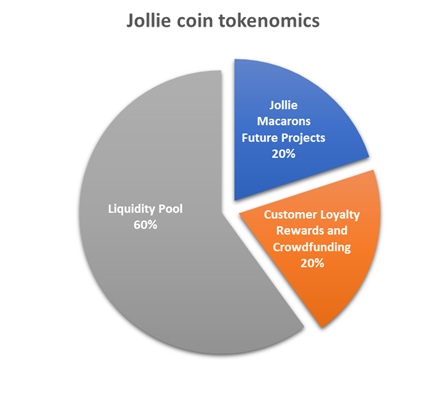 Of these, 20% (200 million JollieCoins) are reserved for customer loyalty rewards, crowdfunding and marketing campaigns, so our community can receive JollieCoins just by buying or supporting Jollie Macarons.